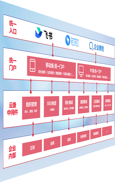 对协作平台提供支持服务,,支持企业应用与协作平台对接,,,包含组织同步、、、、消息集成、、、、待办集成等。。。支持目前主流的协作平台:钉钉、、企微和飞书。。